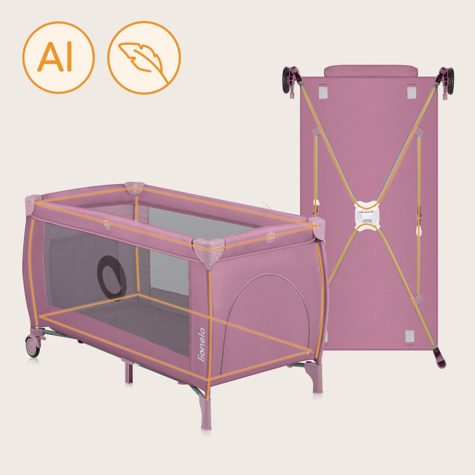 Lionelo - Potovalna posteljica STEFI PLUS Rožnata magnolija