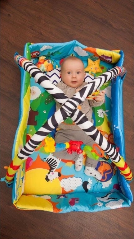 • Omogoča dvig robov preproge in ustvarjanje prijetnega igralnega kotička za otroka.