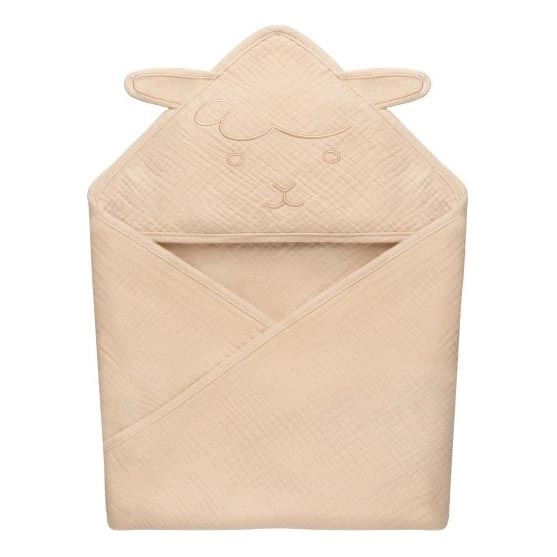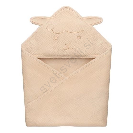 Lionelo - Otroška mušelinska brisača s kapuco, barva bež (peščena)