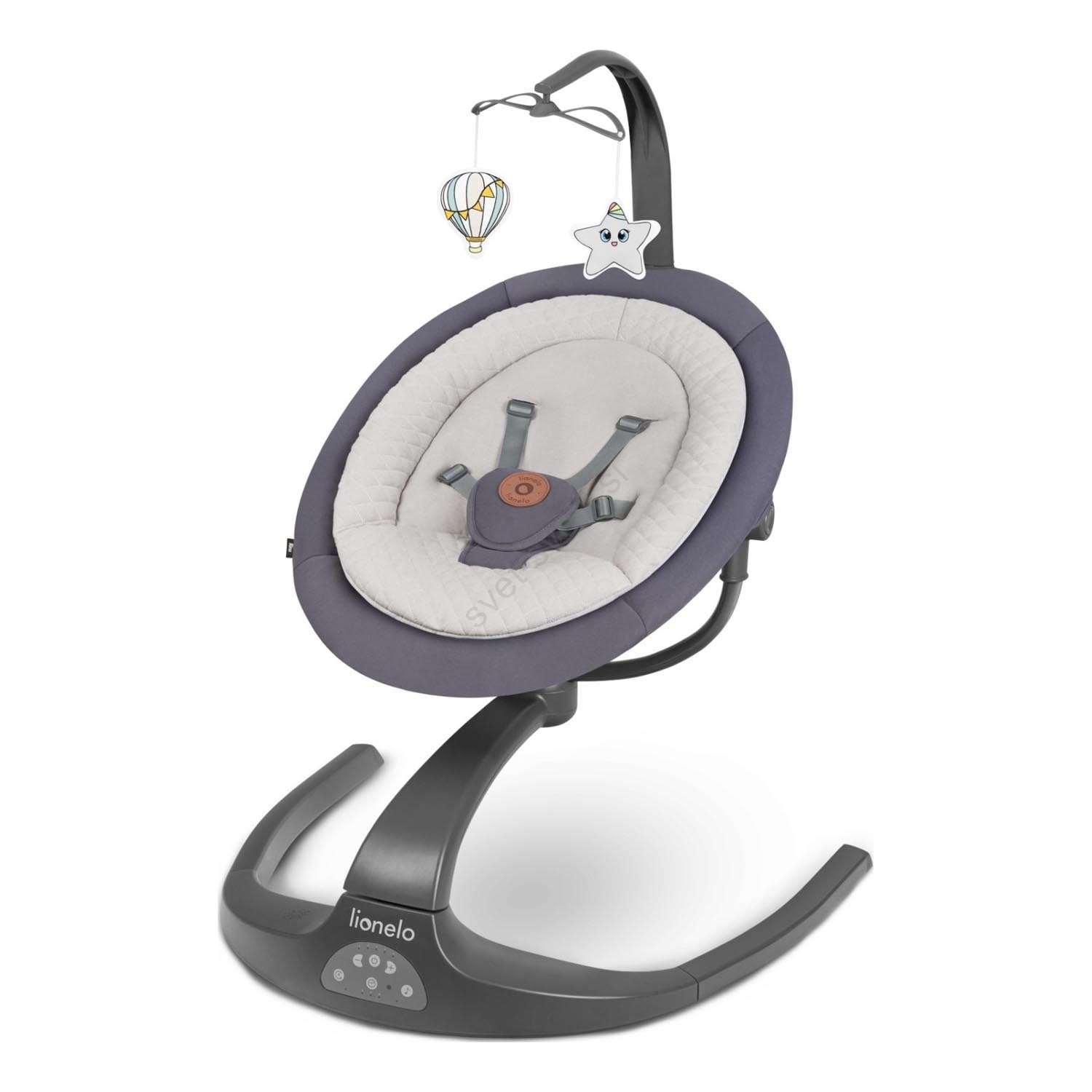 Lionelo - Otroška gugalnica z melodijo RINA 4xAA Betonsko siva + daljinski upravljalnik