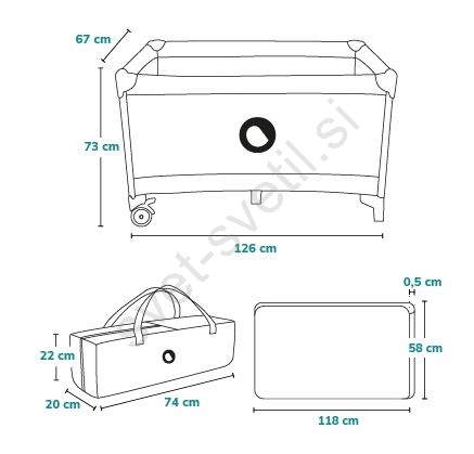 • Kompaktne dimenzije po zlaganju in priložena transportna torba z ročaji omogočajo, da posteljico vedno vzamete s seboj.