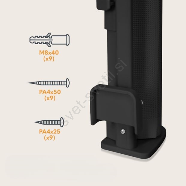 • Komplet vsebuje tri montažne sete, zato je isto ograjo mogoče namestiti na treh različnih mestih glede na trenutne potrebe.