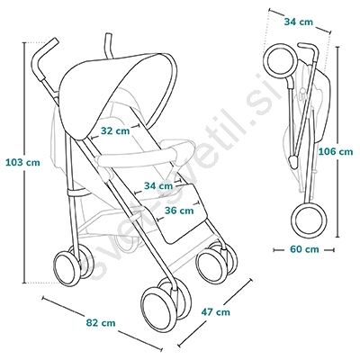 • Enostavno zlaganje v kompaktno velikost prihrani prostor, ko voziček ni v uporabi.