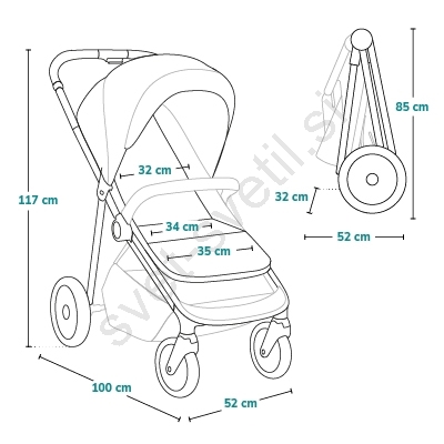 • Strešica ima filter UPF 50+ in vodoodbojno plast, ki preprečuje premočitev.