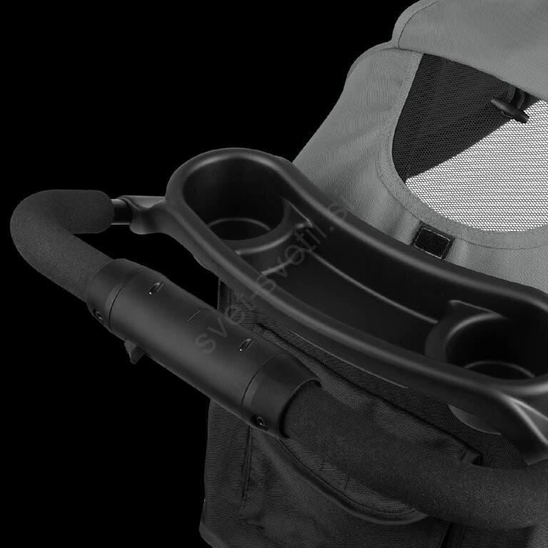 • Voziček ima varovalo v obliki pladnja, ki otroku omogoča odložiti stekleničko ali prigrizek med sprehodom.