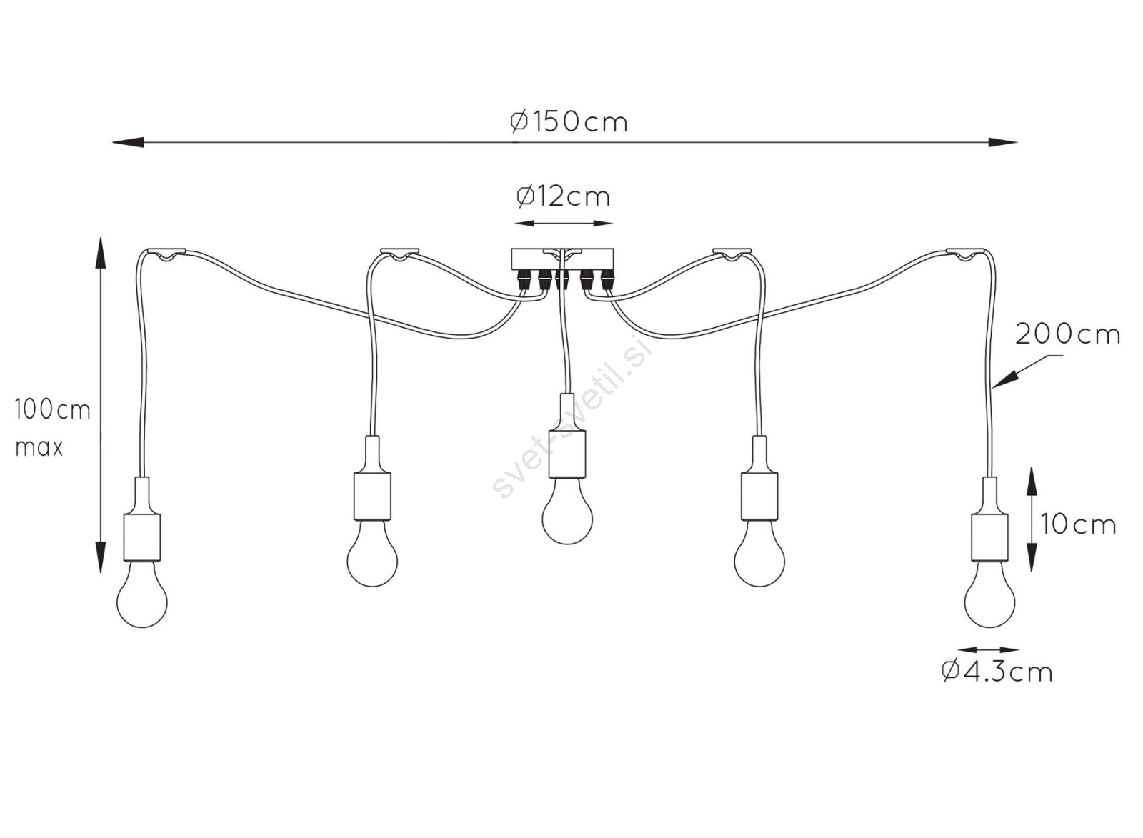 Lucide 08408/05/30 - Lestenec na vrvici FIX MULTIPLE 5xE27/60W/230V pajek