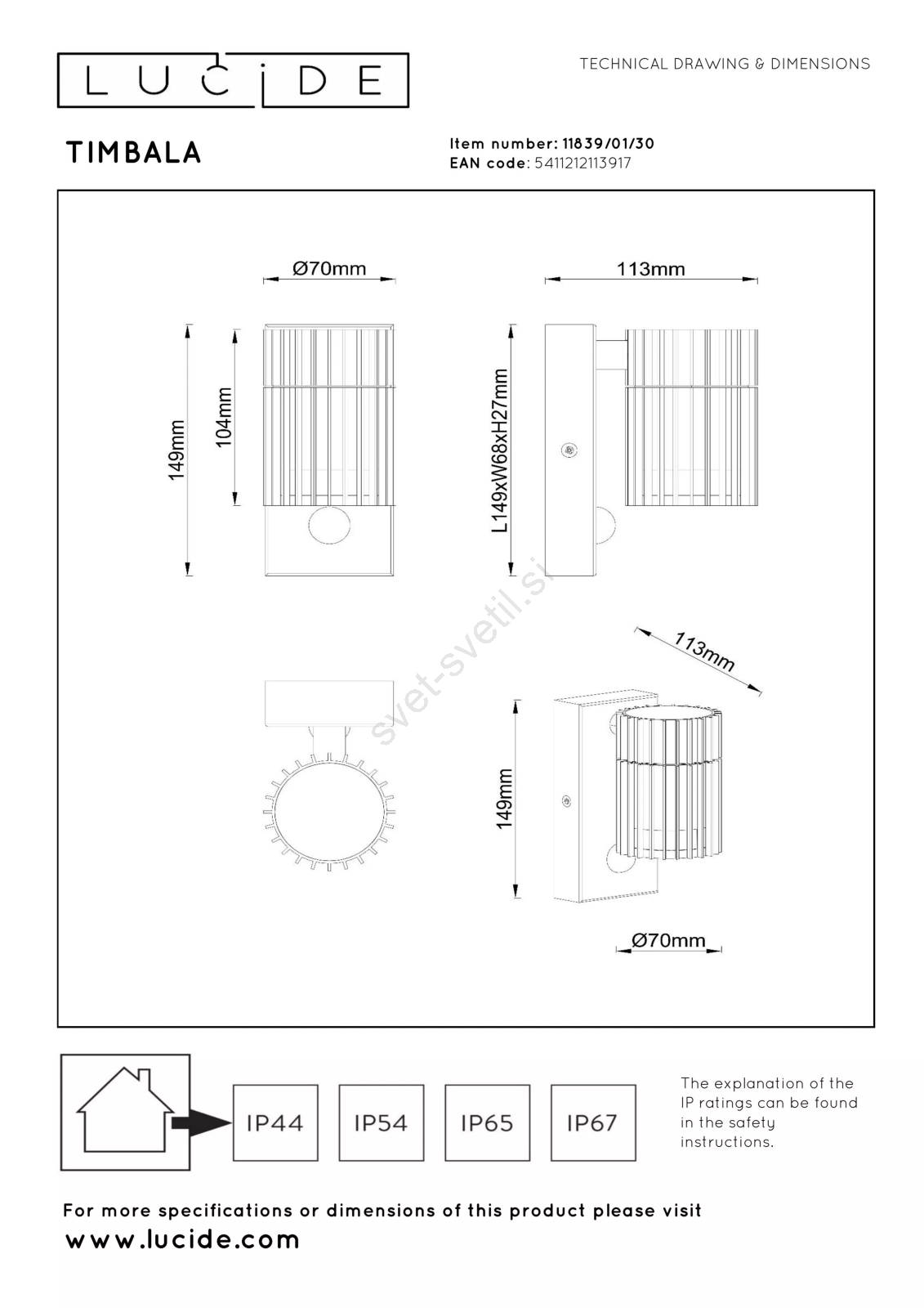 • Stopnja zaščite IP44, kar pomeni, da je svetilka zaščitena pred brizganjem vode in vdorom manjših trdnih delcev.