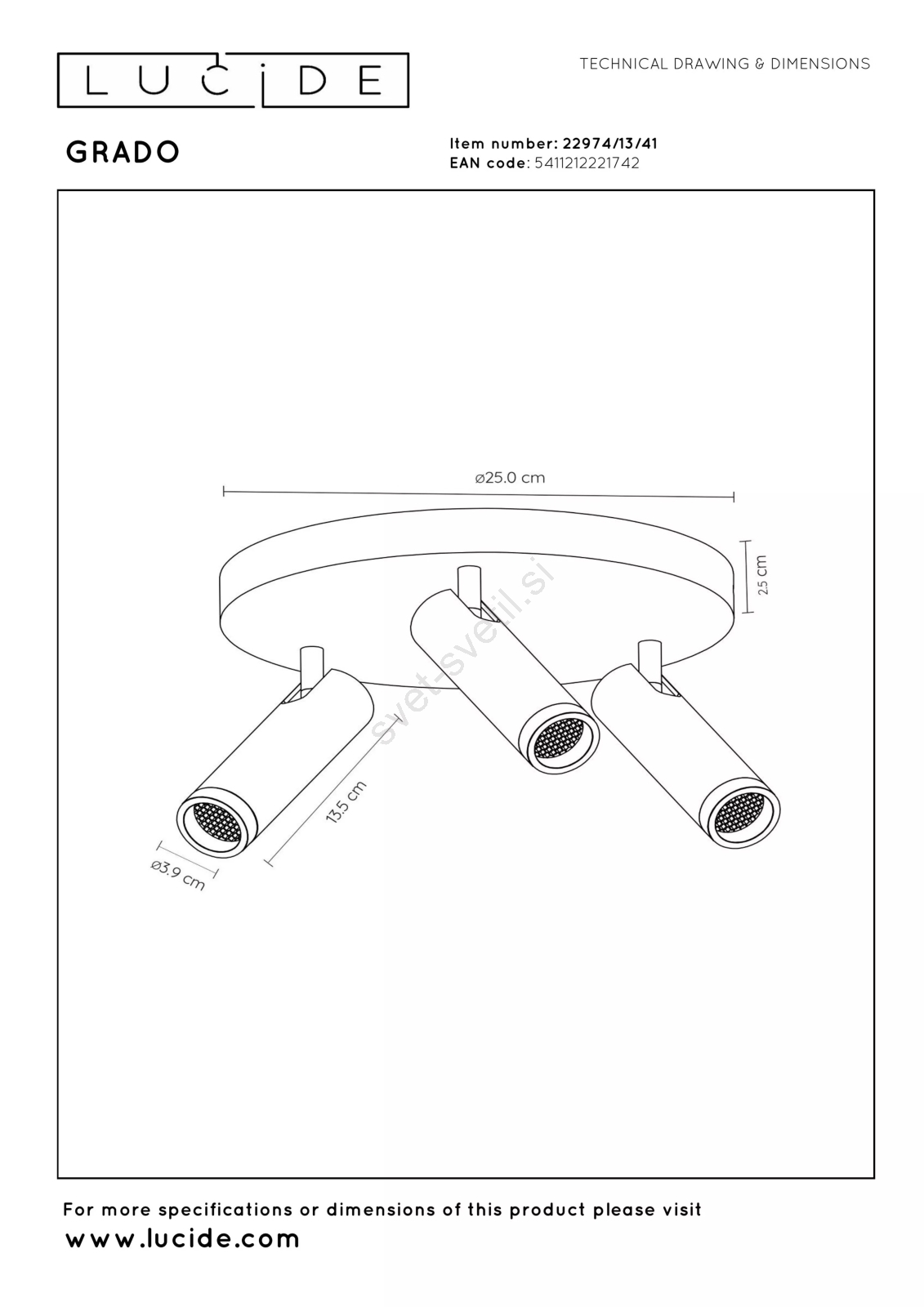 • Lucide 22974/13/30 - Stropno reflektorsko svetilo GRADO 3xGU10/12W/230V črna