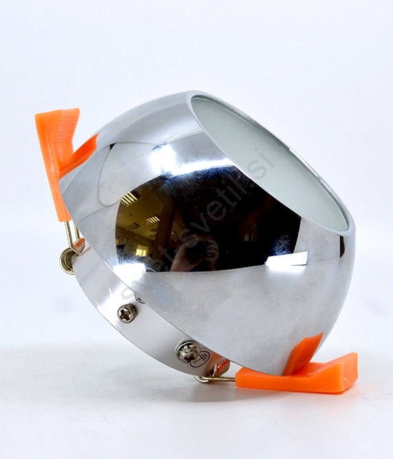 • Senčilo iz satiniranega stekla je dopolnjeno z aluminijem v barvi sijajnega kroma.