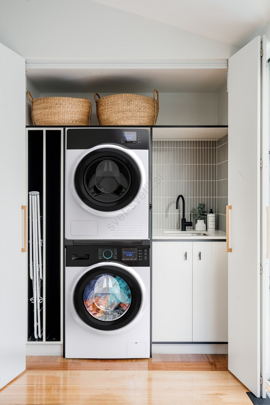 • Praktična izvlečna polica z nosilnostjo 10 kg za udobno ravnanje z perilo.