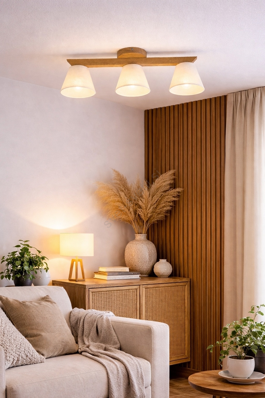 Dnevna soba in spalnica, Leseni lestenci, Lestenci, Lestenci, Notranja razsvetljava, Po prostorih, Svetila