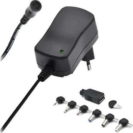 • V paketu je komplet zamenljivih napajalnih konektorjev, ki vključuje najpogostejše tipe Jack konektorjev: 2,5 mm, 3,5 mm, 3,5 x 1,35 mm, 5 x 2,1 mm, 5,5 x 1,5 mm in 5,5 x 2,5 mm.