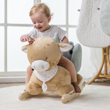 • Čudovita plišasta gugalnica v obliki krave z lesenim podstavkom in ročaji je igrača, ki vabi k guganju in božanju.