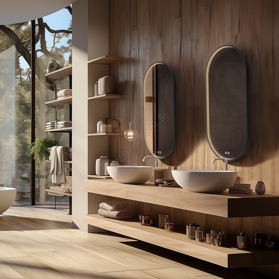 • Oblikovano stensko ogledalo z LED osvetlitvijo.