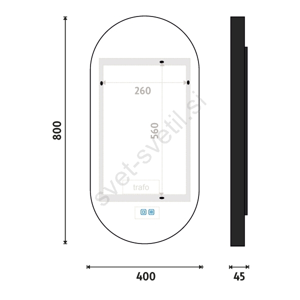 • Ogledalo ima tudi pomnilniško funkcijo, ki si zapomni zadnjo nastavitev jakosti in barvne temperature svetlobe.