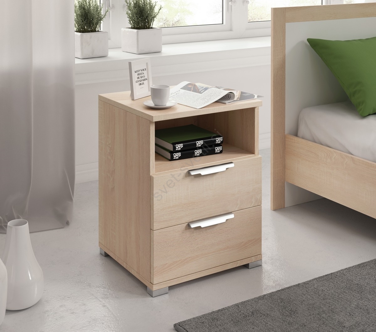 • Ima dva predala, spodnji predal z ročajem in zgornji predal brez njega za minimalističen in čist učinek.