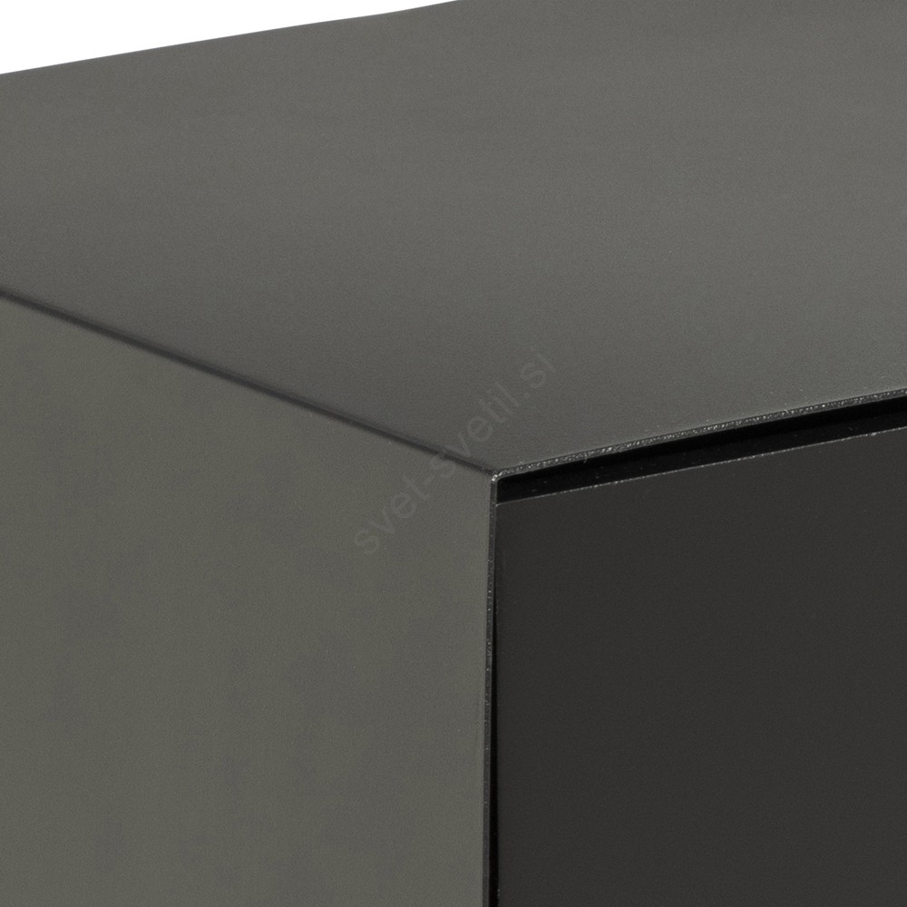 • Površina in okvir iz mat črne, grobo prašno lakirane jeklene pločevine; predal je črn, z odprtim predalom in možnostjo montaže na steno.