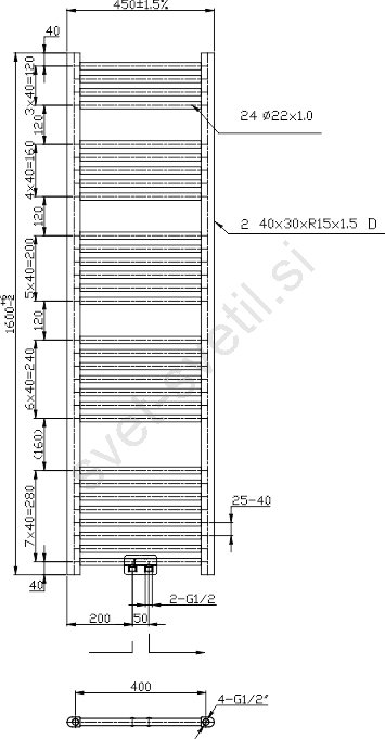 Novaservis - Kopalniški lestevni radiator 648W/230V 160x45 cm, črn, raven