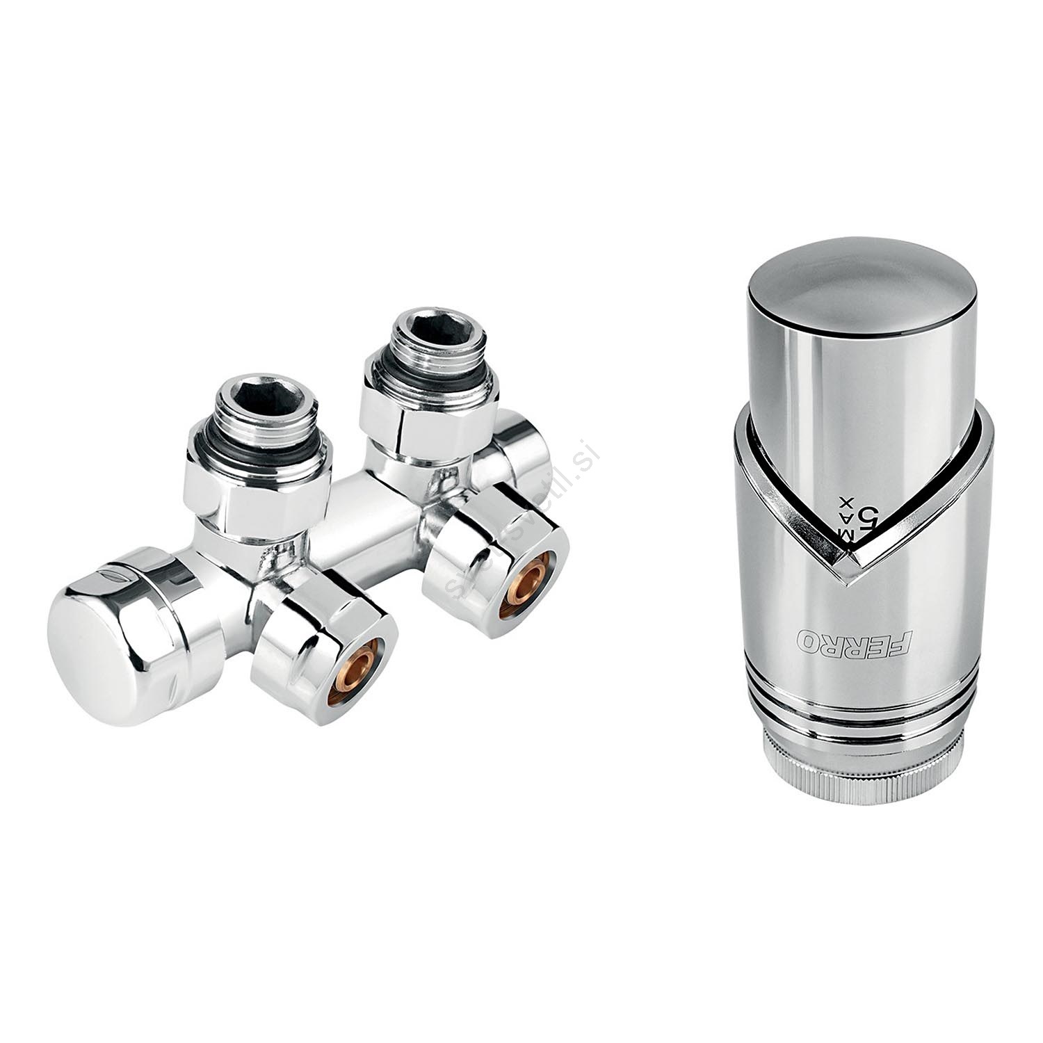 Novaservis - Kotni komplet za radiatorje s sredinskim priključkom, sijajni krom