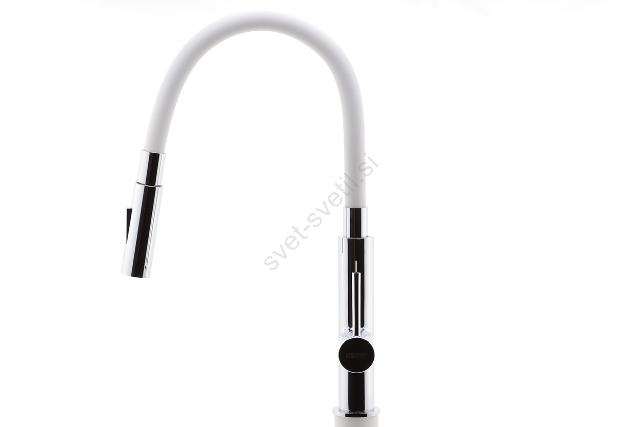 FERRO - Pipa za umivalnik z gibljivo roko sijajni krom/bela