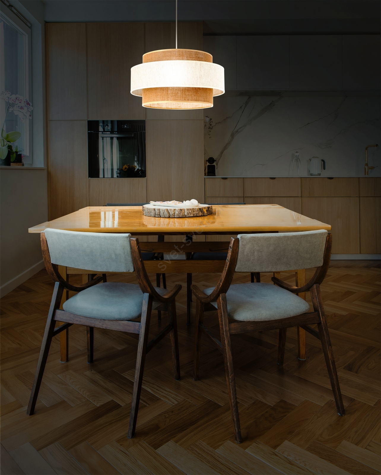 • Viseči lestenec na vrvici BOHO 1xE27/60W/230V, premer 40 cm, bela/juta