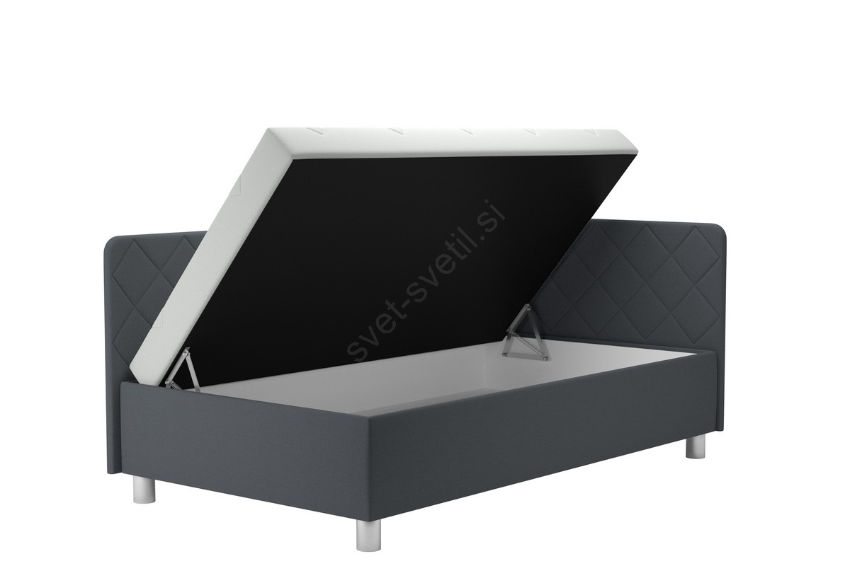 Tapecirana dnevna postelja z vgrajenim prostorom za shranjevanje in vzmetnico EMILE 110x200 cm siva