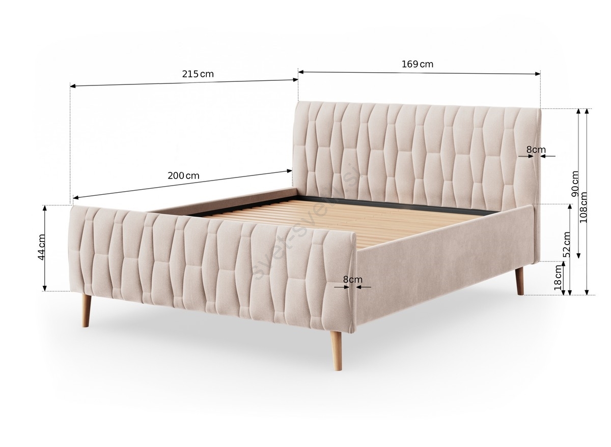 • Elegantne lesene noge (višina 18 cm) zagotavljajo stabilnost in trdnost postelje.