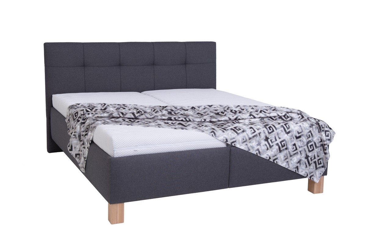 • Oblazinjena zakonska postelja z ločenimi vzmetnicami se ponaša z natančno izdelanim, elegantno prešitim vzglavjem.