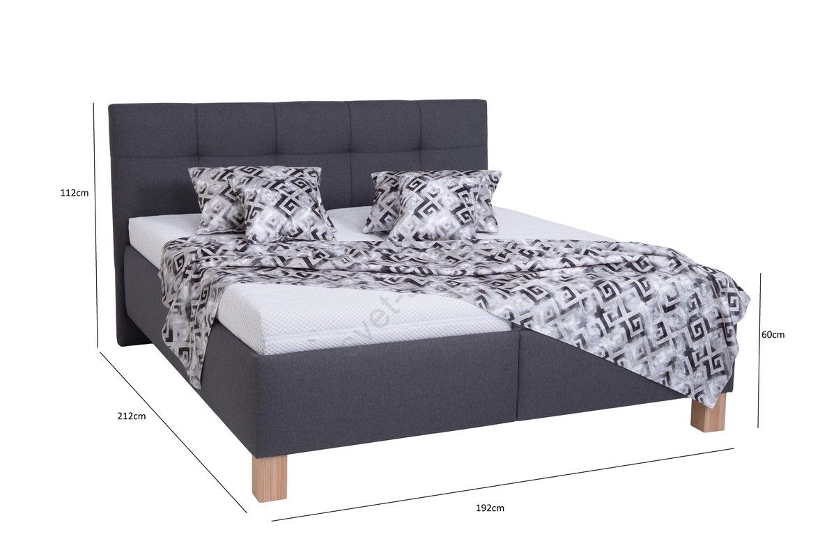 • Tapecirana postelja MARIA 180 x 200 cm z vzmetnico in velikim shranjevalnim prostorom, siva