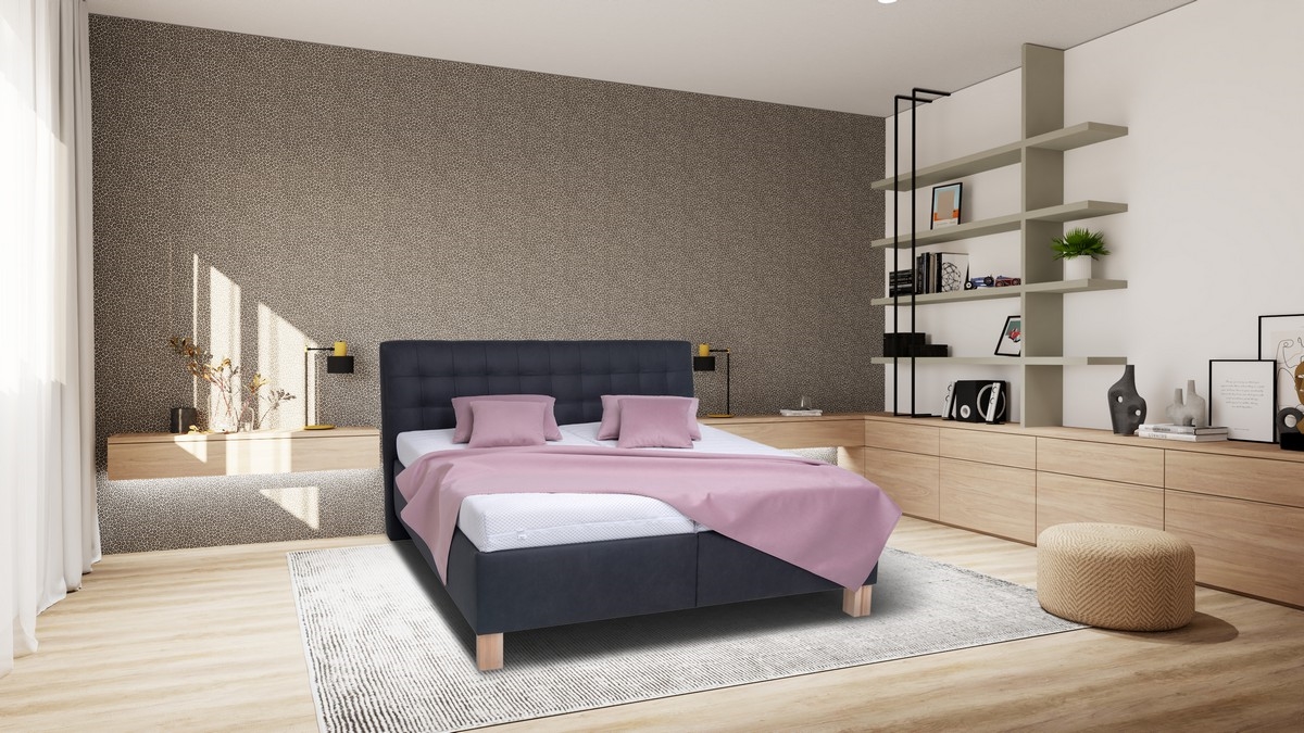 • Tapecirana postelja z vzmetnico in shranjevalnim prostorom VIOLET 160x200 cm, bežna