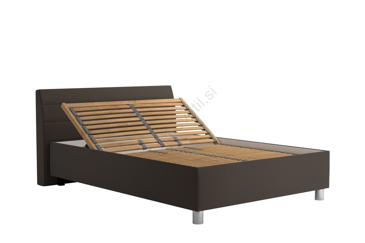 • Postelja je opremljena z mehansko nastavljivo lamelno podnico P12, ki vsebuje 28 lamel, nameščenih v nihajnih gumijastih ležiščih.