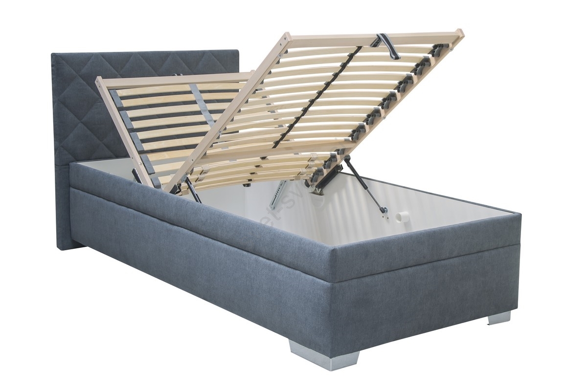 Tapecirana postelja s shranjevalnim prostorom in vzmetnico LANA 90x200 cm, modra