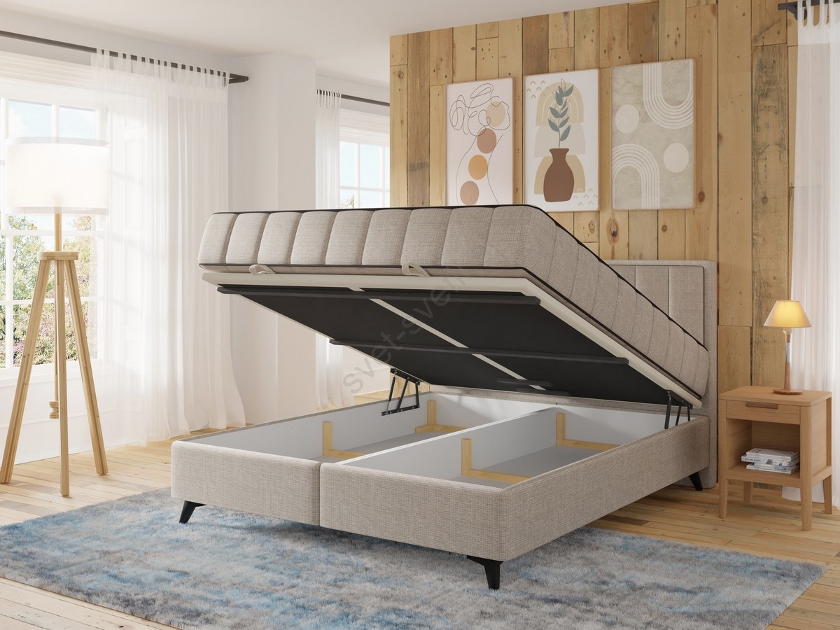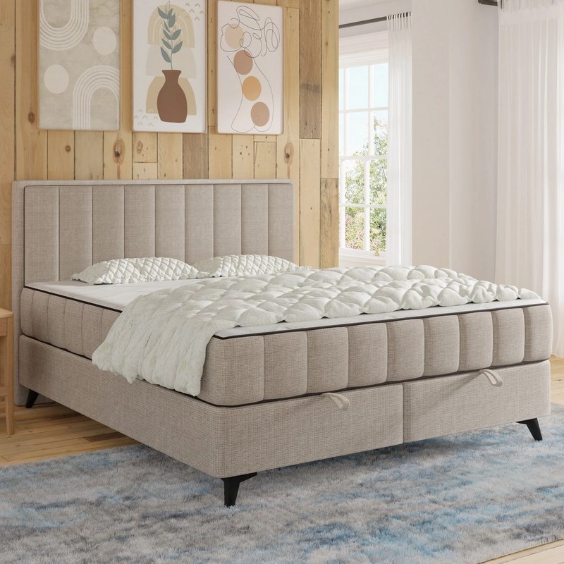Tapecirana postelja ALICIA 140x200 cm z vzmetnicami, topperjem in prostorom za shranjevanje, bež