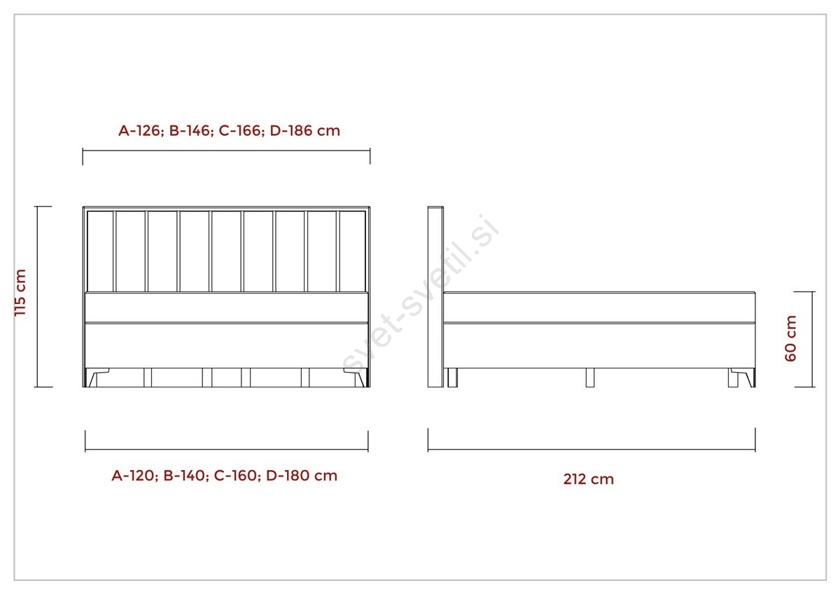 • Stoji na elegantnih visokih lesenih nogah (12 cm), ki postelji dodajo lahkotnost in hkrati zagotavljajo stabilnost.