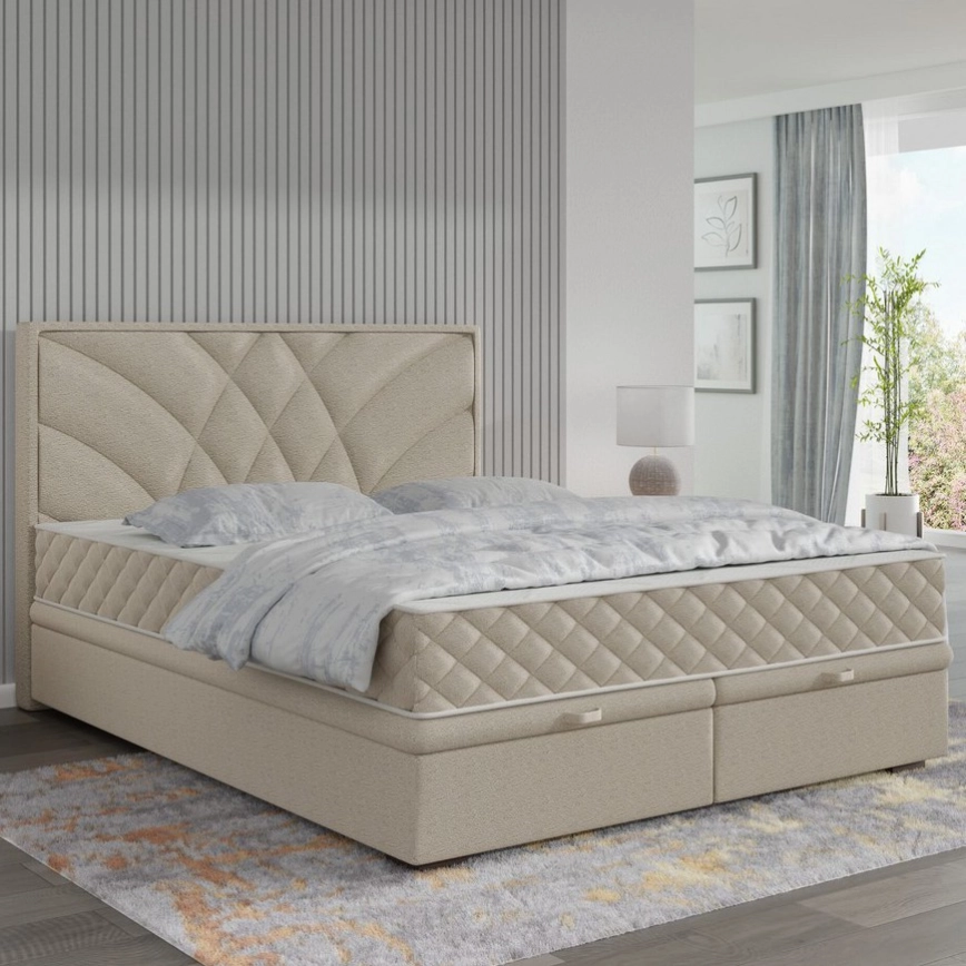 Tapecirana postelja z vzmetnicami in shranjevalnim prostorom GINA 140x200 cm bež