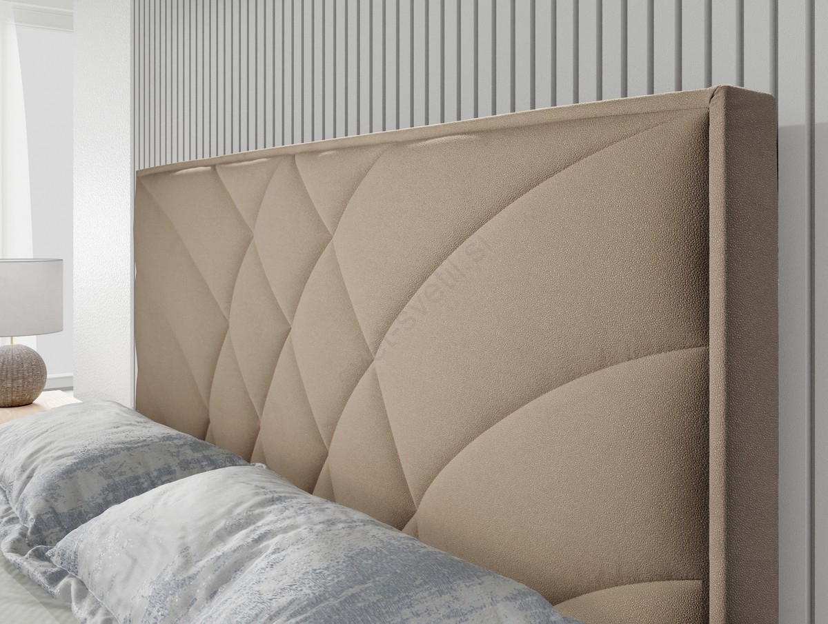 • Ta postelja navdušuje z nežnim videzom in izvirnim vzglavjem z lokovitim prešitjem, ki spominja na eleganten ventilator ali listni vzorec.