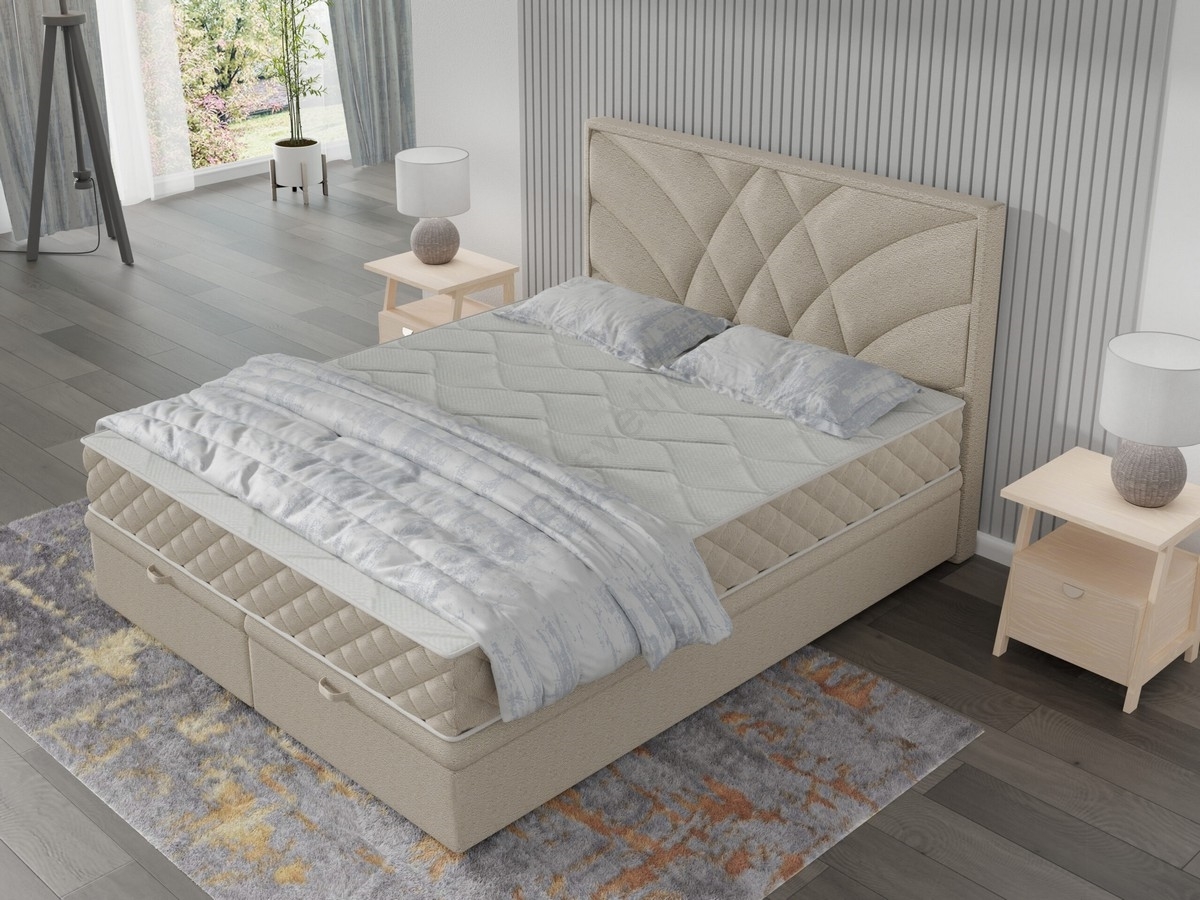 Tapecirana postelja s vzmetnicami in shranjevalnim prostorom GINA 160x200 cm bež