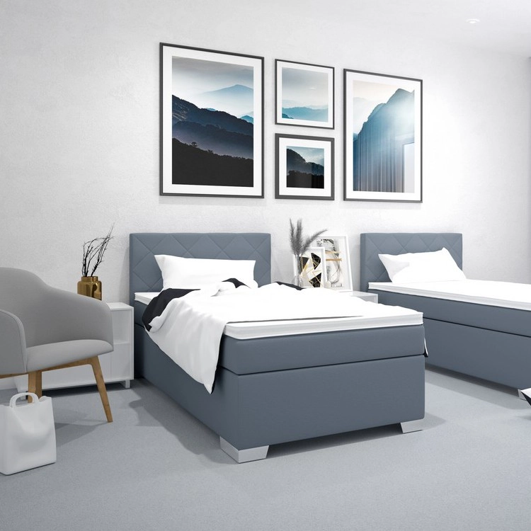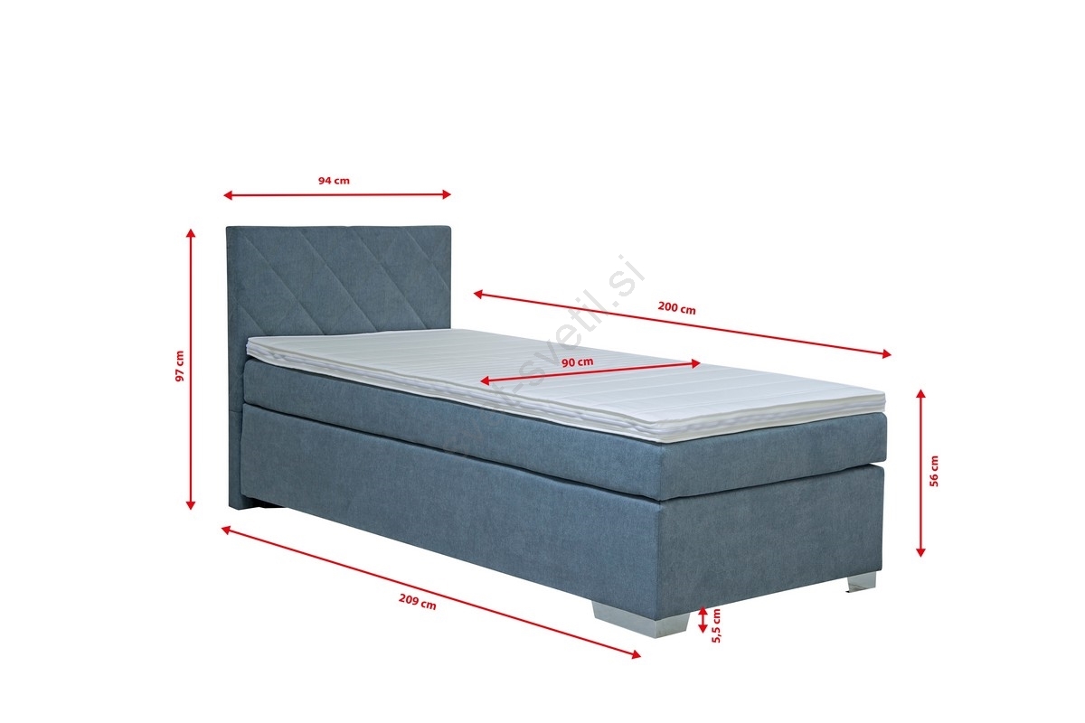 Tapecirana postelja z vzmetnico IDA 90x200 cm modra