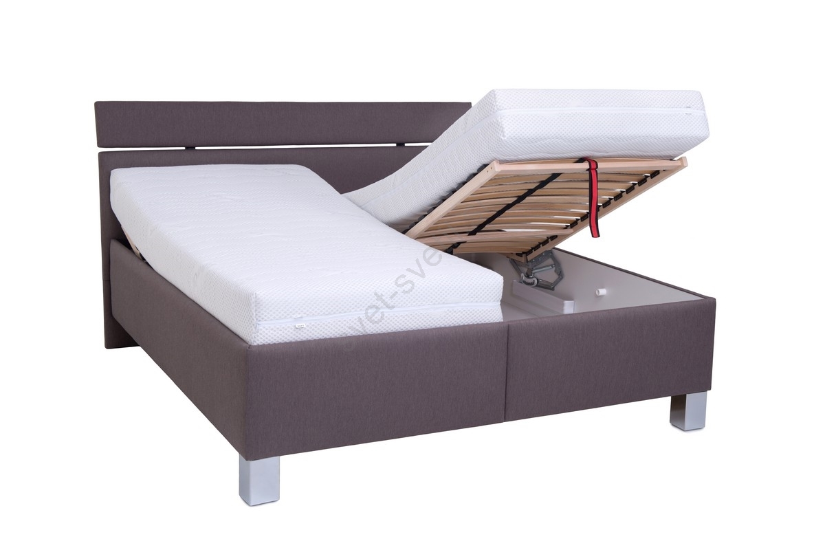 • Tapecirana zakonska postelja z ločeno položenimi vzmetnicami, nudi maksimalno udobje in praktične funkcije za popoln počitek.