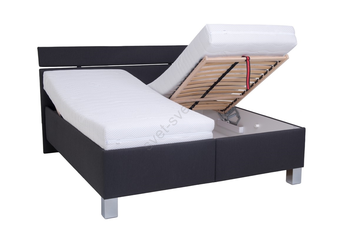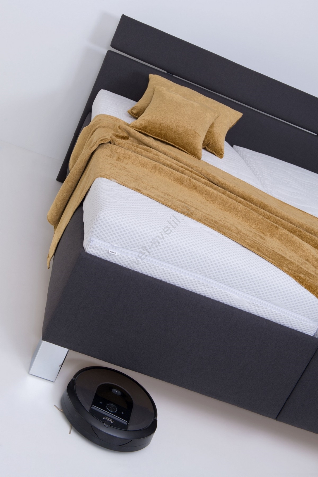 • Tapecirana zakonska postelja z ločeno nameščenima vzmetnicama ponuja maksimalno udobje in praktične funkcije za popoln počitek.