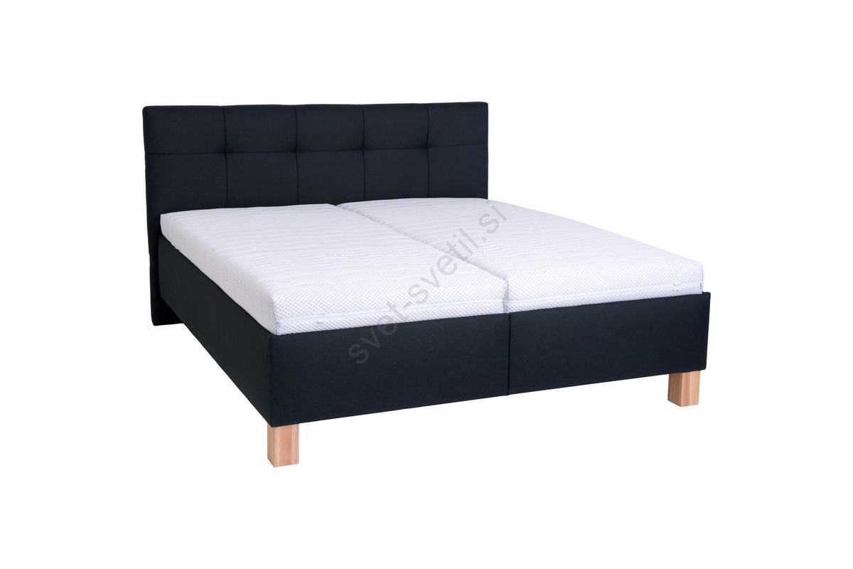 • Tapecirana zakonska postelja z ločeno položenimi vzmetnicami se ponaša z natančno izdelanim, elegantno prešitim vzglavjem.