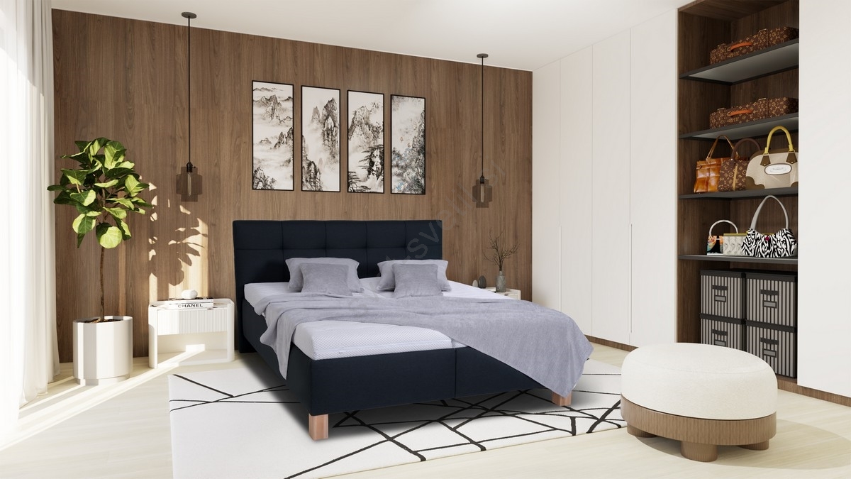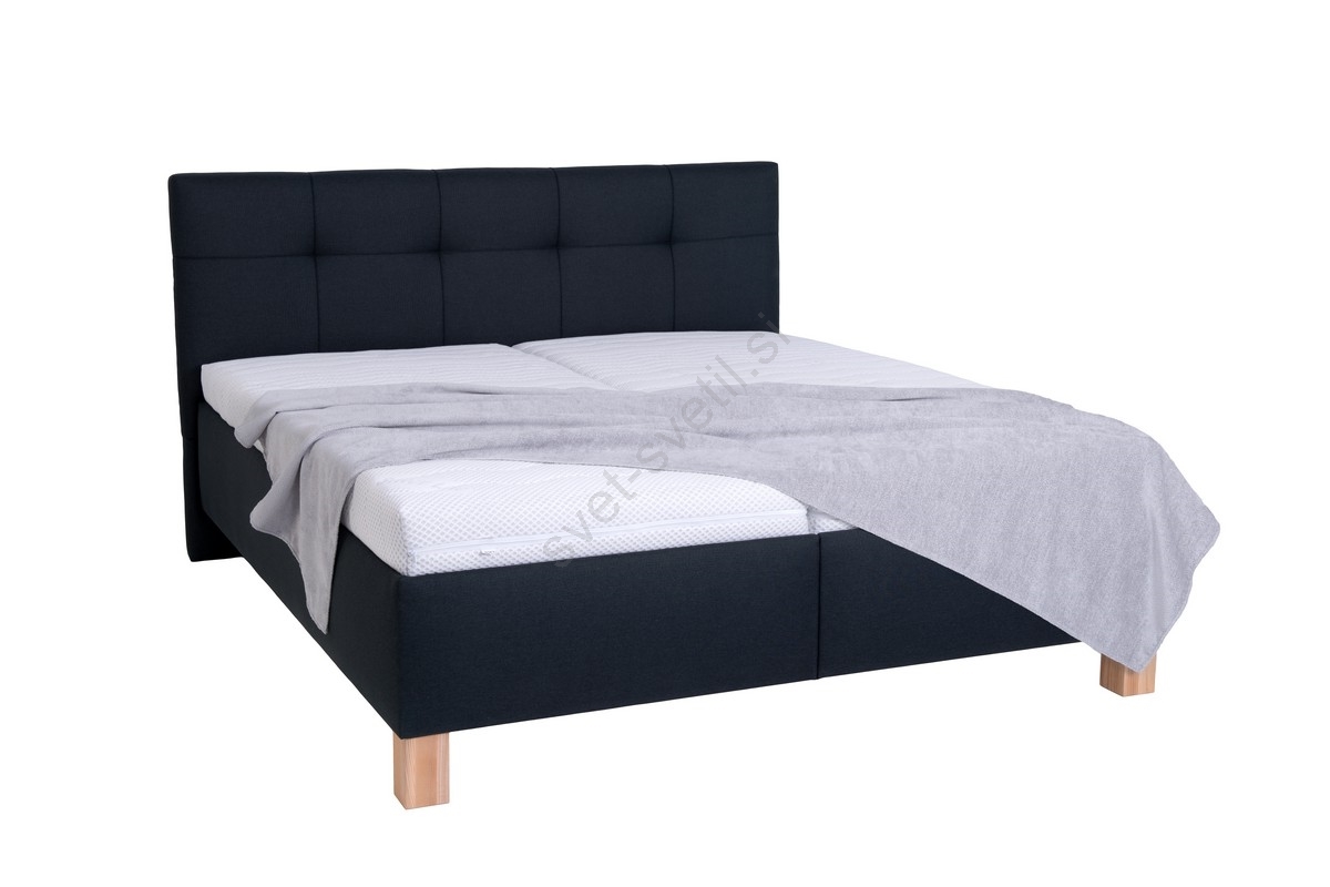 • Tapecirana zakonska postelja s ločeno položenima vzmetnicama se ponaša z natančno dodelanim, elegantno prešitim vzglavjem.