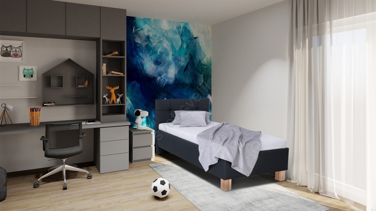 • Oblazinjena postelja MARIA ONE 90x200 cm z vzmetnico in prostornim predalom za shranjevanje v antracitni barvi