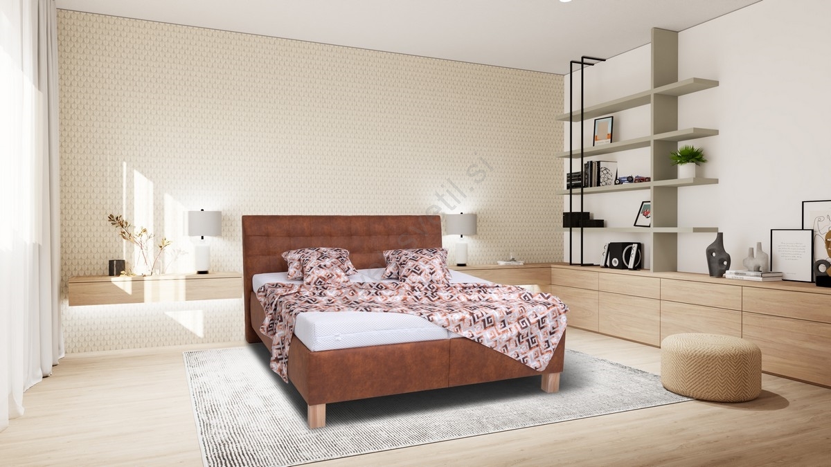 • Tapecirana postelja VIOLET 180x200 cm s vzmetnico in shranjevalnim prostorom, konjakasta rjava