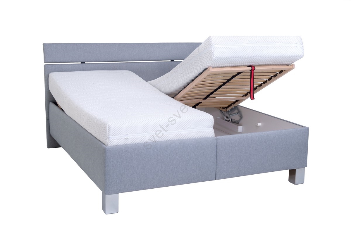 • Udobno razdeljeno vzglavje postelje - oblečeno v prijetno tkanino s PUR peno za mehkobo in udobje, idealno na primer pri branju.