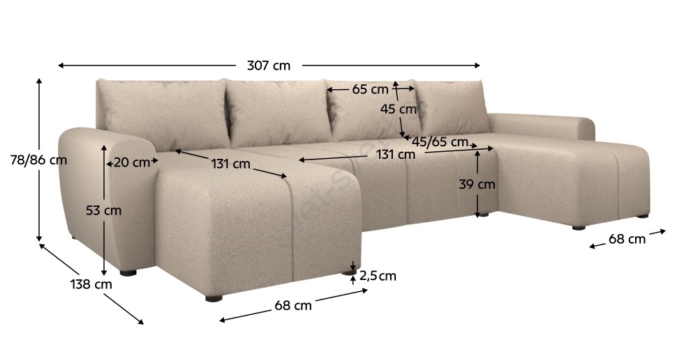 • Sedežna garnitura je namenjena postavitvi ob steno.