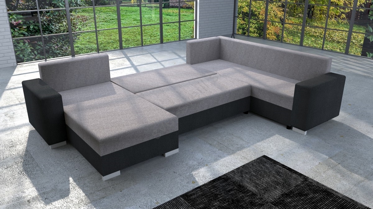 • Oblazinjena univerzalna raztegljiva sedežna garnitura v obliki črke U YORK siva/črna