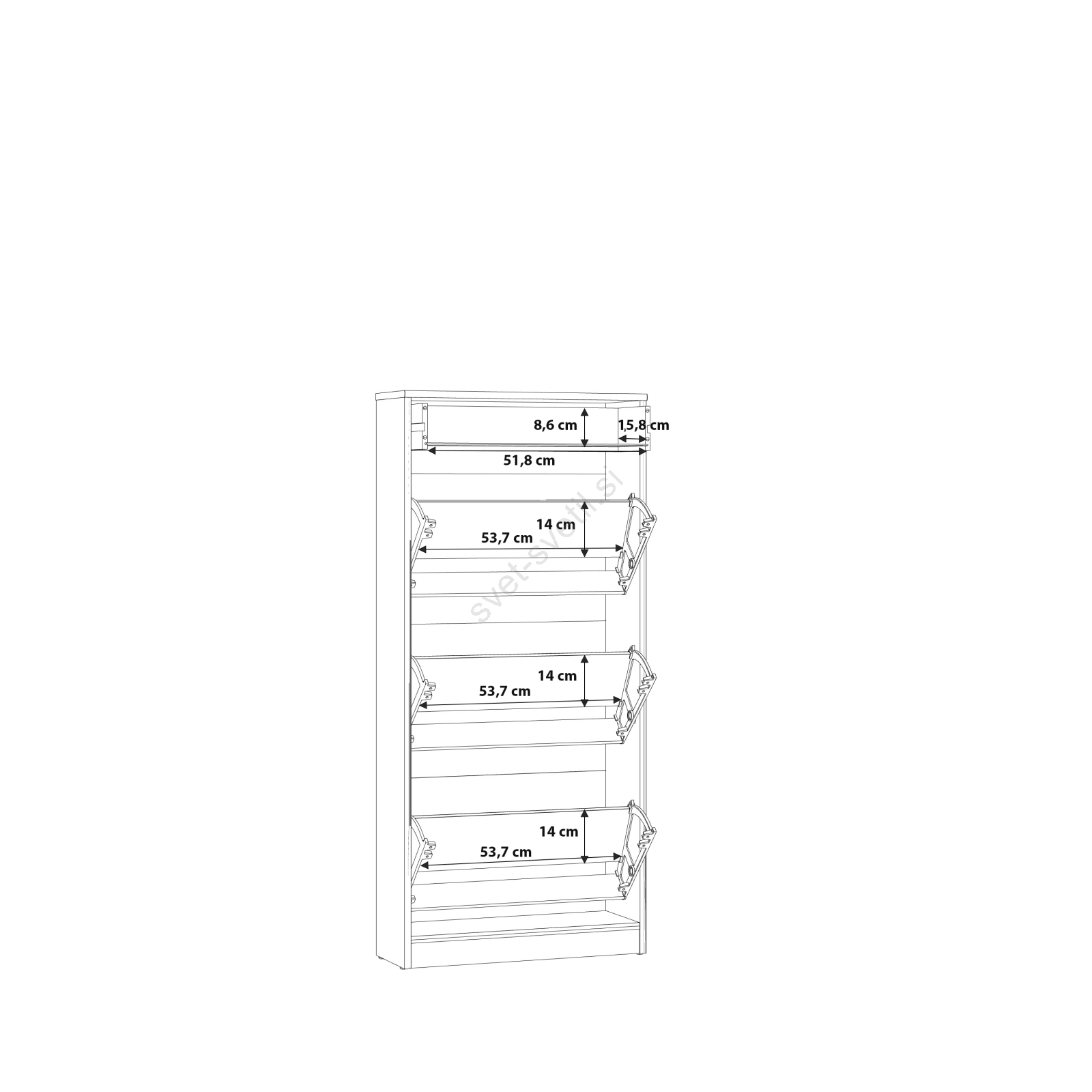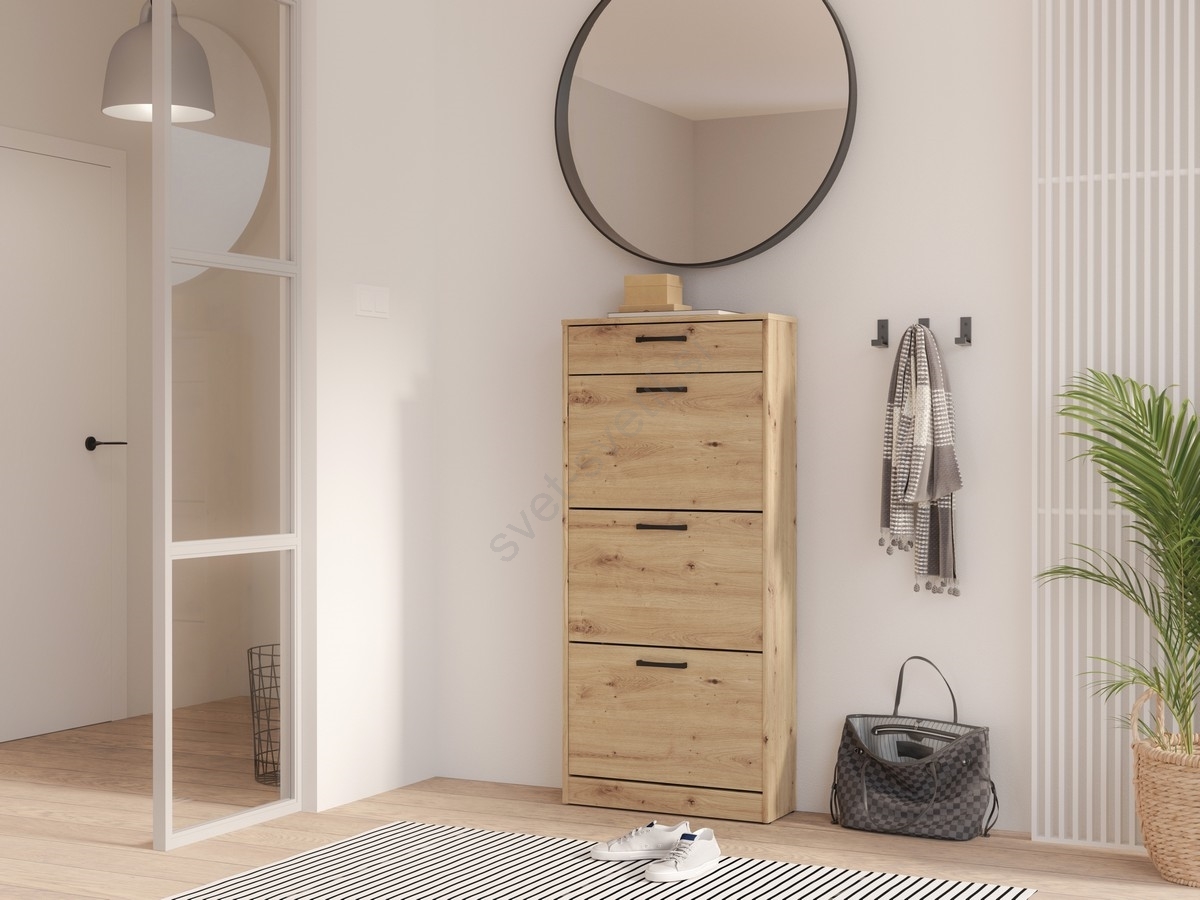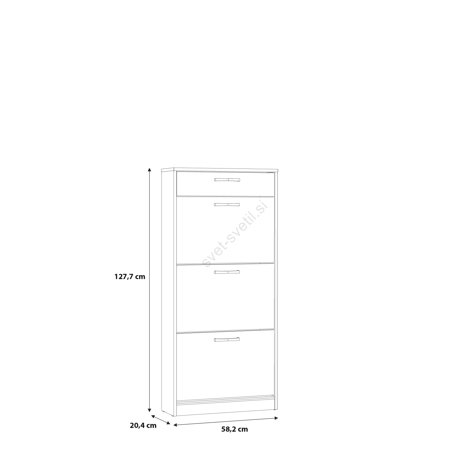 • Zaradi svojega vitkega profila ta štirinadstropna omara za čevlje zavzame malo prostora na tleh, a vseeno ponuja dovolj prostora za shranjevanje.