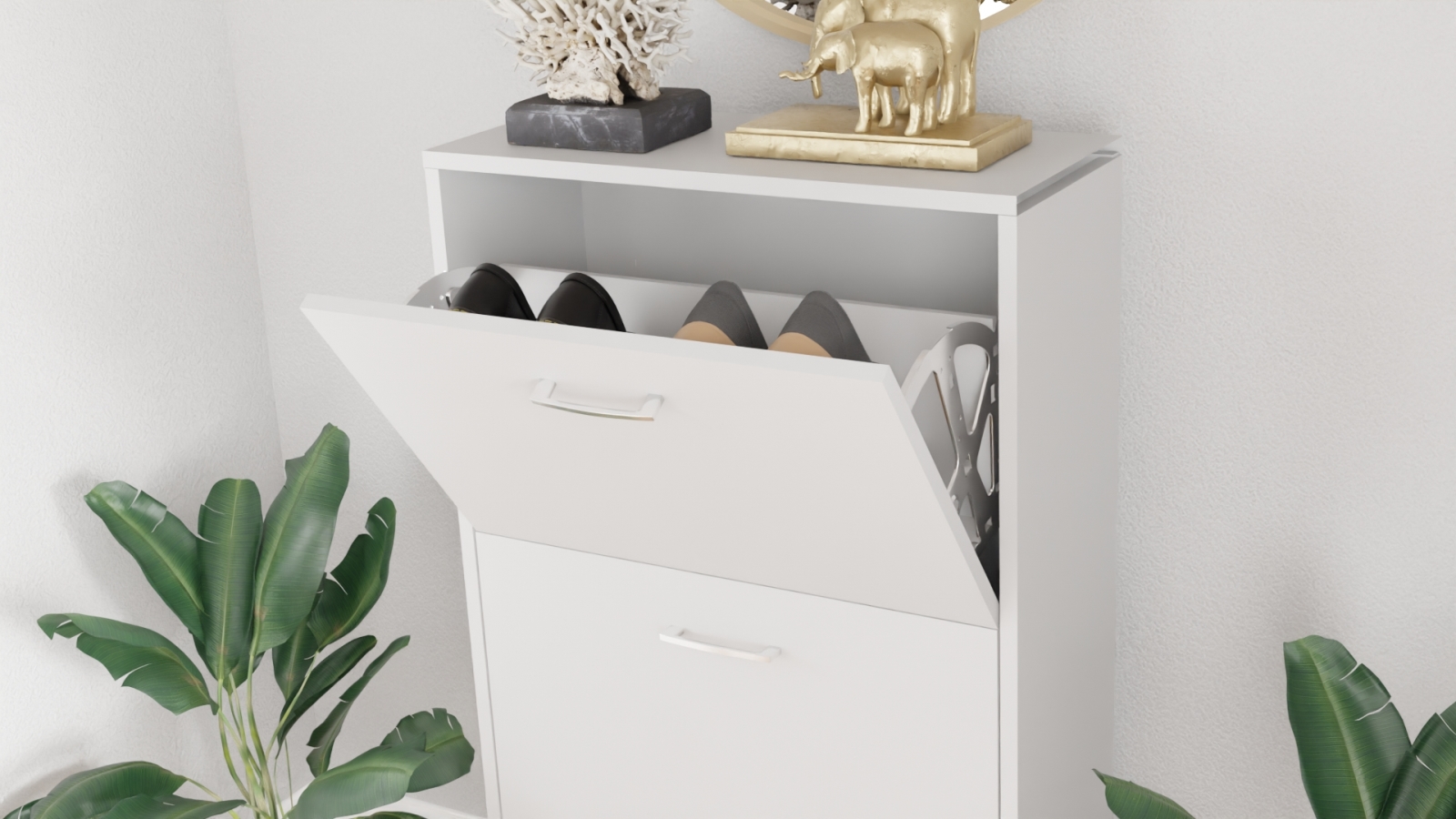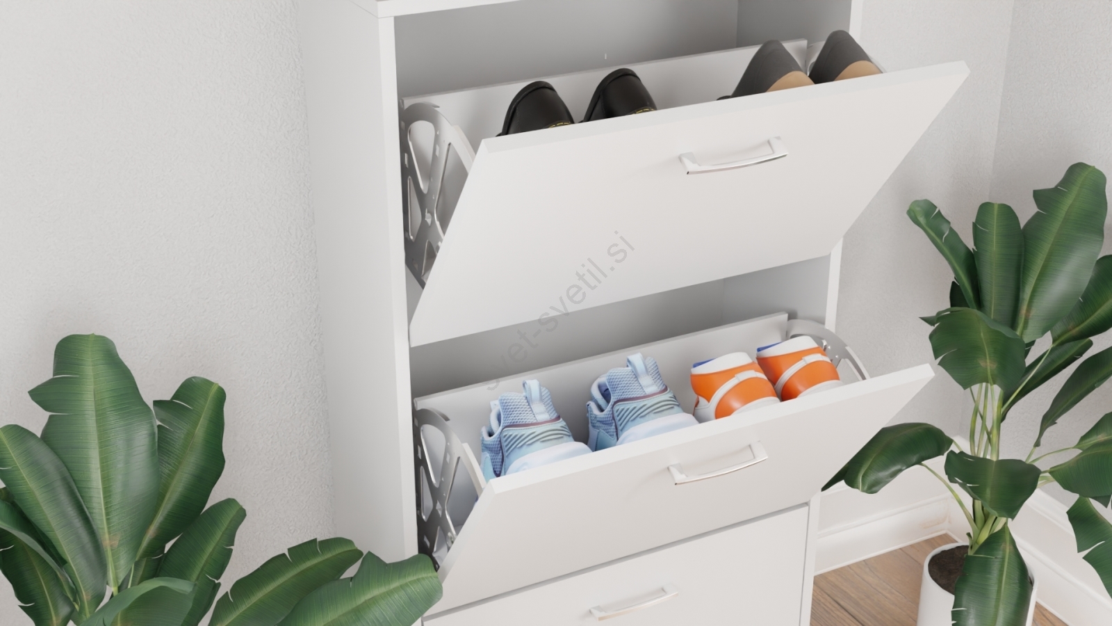 • Maksimizira navpični prostor in hkrati ohranja enostaven dostop do čevljev; zgornji del je lahko tudi prostor za odlaganje ključev ali vazo s cvetjem.