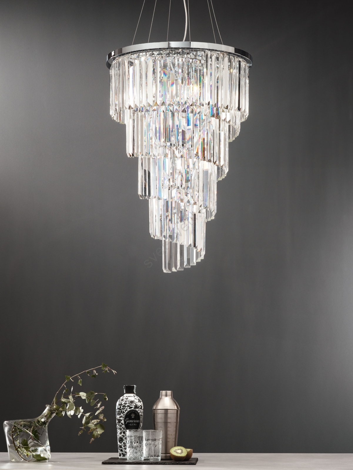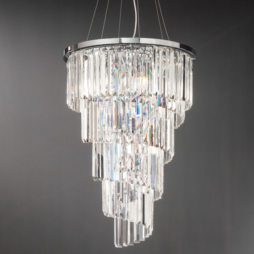 Ondaluce - Kristalni lestenec na tankem kablu ALEXANDER 10×E14/10W/230V, premer 50 cm, sijajni krom/prozoren